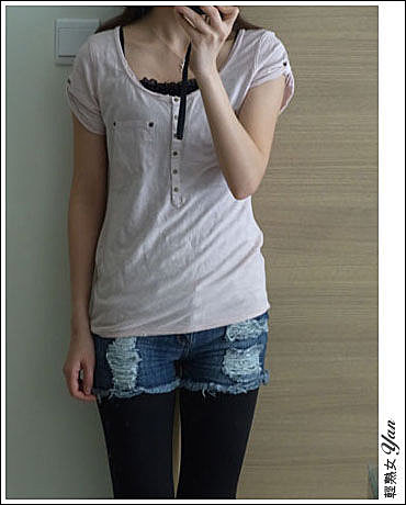配短褲… 好像沒穿褲似的…..