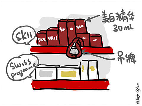 我(再次指著吊牌):是上面那個SKII美白精華….