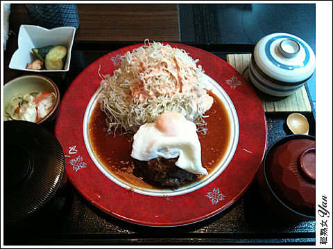 超厚的和牛漢堡加上日式醬汁再配上白飯….