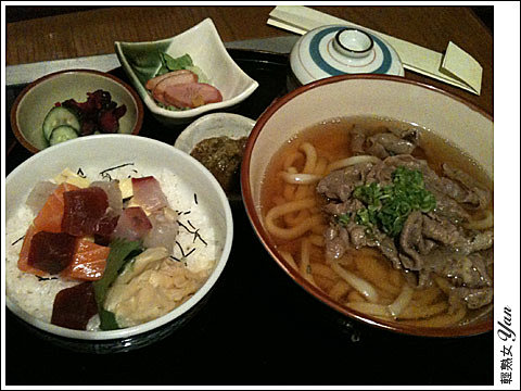 這是老爸點的魚生飯+牛肉烏冬套餐